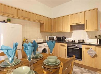 The kitchen is equipped with fridge freezer, washing machine, oven, hob, microwave and a good range of cooking utensils and crockery.