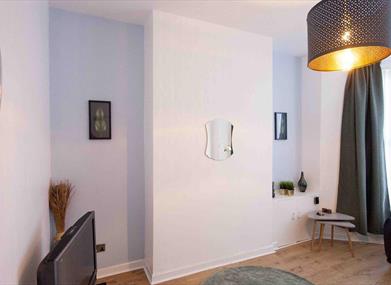 Charming and spacious, this refurbished apartment offers all the comforts guests would expect from a luxury serviced apartment. A large and stylish sitting room features a flat screen TV with cable television channels via a Tivo box. Guests can pause and rewind live TV, record programmes to watch later, access catch-up TV. There is also fibre optic WiFi.