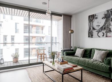 The apartment is located on the river embankment in the heart of the Titanic Quarter, with restaurants, cafes and a convenience store located on the ground floor of the complex.