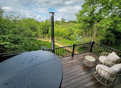 Unwind with serene views, a luxury welcome box & an amazing hot tub.