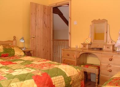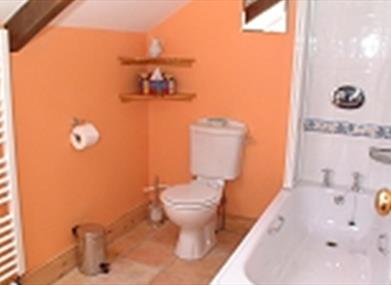 Both bedrooms (1 with single bed and 1 with double bed and single bed) have original time-worn beams, a reminder of the age of this farmstead. The bathroom is spacious and bright and has both bath and shower.