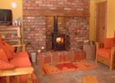 A red brick fireplace houses a wood burning stove, although central heating is provided throughout. The half door opens out onto a large terrace where guests can enjoy the open air using the barbeque and patio furniture provided.