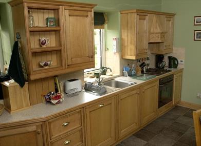 Green and luxuriant describe both the furnishings downstairs and the surrounding countryside which the cottage overlooks. Old wood, rustic brick and stone floors add to the charm but go hand-in-hand with all modern appliances such as freezer, digital satellite TV, video and mobile phone. With its own private patio area, yet full use of all the amenities on site, it is a much sought after cottage.