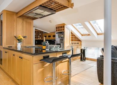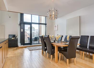 Perfect for the larger group or family stay, our five bedroom "Goliath" penthouse apartment overlooks the Albert Bridge with spectacular views.Guests can relax in the open-plan living space, the upper level mezzanine seating area, or the balcony overlooking the river. With 5 bedrooms and 2 bathrooms this penthouse apartment is perfect for a longer term vacation or a short city break.