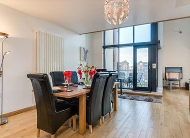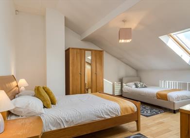 Perfect for the larger group or family stay, our five bedroom "Samson" penthouse apartment overlooks the Albert Bridge and offers spectacular views.Guests can relax in the open-plan living space, the upper level mezzanine seating area, or the balcony overlooking the river. With 5 bedrooms and 2 bathrooms this penthouse apartment is perfect for a longer term vacation or a short city break.