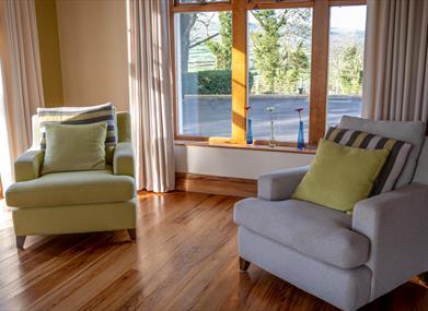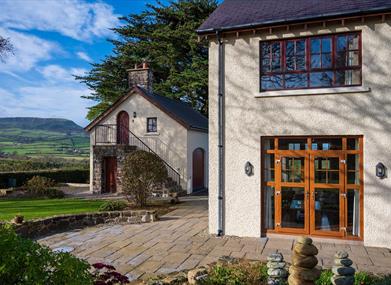 Cypress Meadow is set on a large, spacious plot only a few minutes drive from Ballygally. It has a large private garden to the rear and ample room for parking to the front. The accommodation is arranged over two floors. There are wooden floors, underfloor heating and free WiFi throughout the house. On the lower floor, there is a large, fully equipped open plan kitchen and open plan living and dining areas with patio doors leading out onto the patio and garden. The kitchen contains an aga and there are two imitation gas log burning stoves in the living/dining areas.