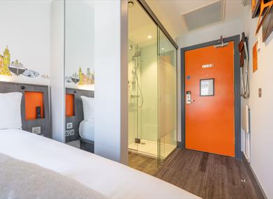 Enjoy free WiFi, TV and air-conditioning in your city centre easyHotel guest accommodation and comfortably get ready for your day ahead.