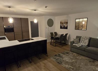 Escape Ordinary in Belfast is a modern one bed Apartment that has a double bed and a sofa bed sleeping 4 people. The apartment has a terrace, 1 bedroom, a living room and a well-equipped kitchen. A flat-screen TV is provided. The accommodation is non-smoking. Free WiFi is available throughout the property.