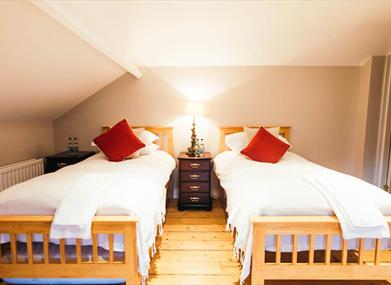 Upstairs - A twin room with optional trundle bed and a double room.