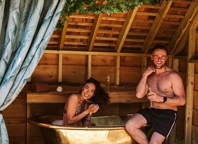 Each hut is luxuriously appointed with a mini kitchen with facilities including hob, microwave, fridge and small freezer, coffee machine, kettle & toaster. The interior bathroom includes a shower room however the stand out feature has to be the outdoor bath on the terrace - get back to nature and bathe in the views, before watching the sun go down beside the fire pit.