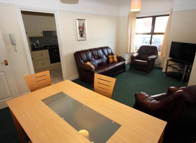 The apartment is modern and being ground floor may suit those with mobility difficulties. There are two spacious double bedrooms with a double bed in each (an extra bed can be supplied so 5 guests can stay), a living/dining room with dining table , kitchen equipped with all cooking utensils, crockery and cutlery etc, and a spacious bathroom with both bath and separate shower. Heating and power is included in the price*. Unusually for apartments, there is some outdoor space which will have a table and seating installed in the Spring/Summer. It is enclosed and for the use of this apartment only. Whilst no smoking is permitted in the apartment, smokers are welcome to use the patio. Guests also have the use of one parking space, although there is additional street parking if required. This is a low crime residential area.