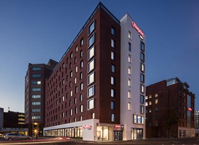 Hampton by Hilton Belfast is located in the heart of the city with discounted parking and WIFI. It is a focussed service hotel, offering guests a modern hotel. The Hampton by Hilton brand offers free cooked breakfast, 24-hour food service, a contemporary lobby and well-appointed bedrooms featuring air-conditioning, stylish bathroom, guest safe, black-out curtains and Smart TV.The lobby concept features zones, styled as the Welcome Zone, Work Zone, Gathering Zone and the Hub, each designed to offer spaces that guests can use to relax, work or socialise in. With fitness suite including a range of cardiovascular and conditioning equipment.