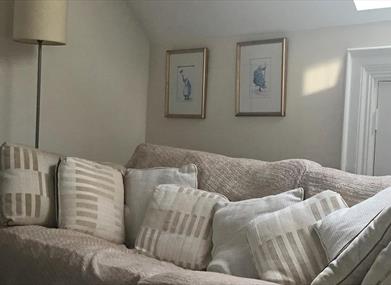 Guests have the top floor of this three storey home with double bedroom, ensuite shower room and a separate room with sofa, desk and TV.