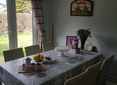 Bathroom downstairs and shower room upstairs. Cosy sitting room with open fireplace and Freeview TV, DVD player and music centre. Well equipped kitchen which opens onto the back garden and drying green.