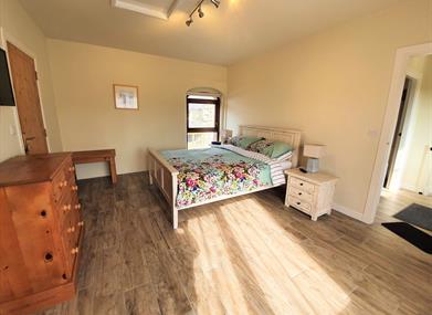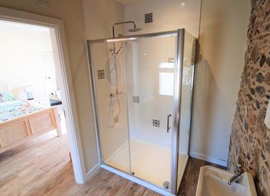 Retaining some of the original stonework and created from part of the original barn, The Loft has three large bedrooms over two levels. The lower bedrooms, one twin and one kinsgize double, have underfloor heating. The kingsize bedroom has it’s own ensuite, additional separate entrance, and facilities to make tea and coffee. It also has a lockable door so that the unit can be split and let in a four plus two configuration. In total the unit has two ensuite shower units and an additional bathroom. At entrance level there is a porch leading into a spacious open dining/living space which features a woodburning stove and a fitted kitchen.