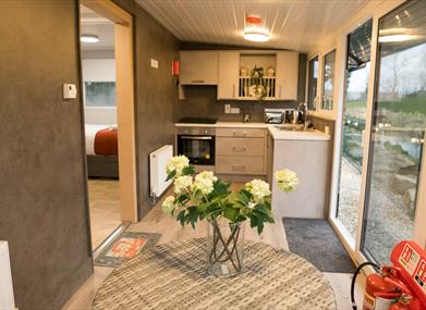 Each lodge cabin has its own private parking area, away from the main dwelling. All accommodation has a fridge freezer, microwave, stovetop, toaster & kettle for your own self-catering needs (along with cookware, crockery & utensils). We also provide complimentary tea, coffee. Bedlinen & towels are included. Also Flat Screen TV in the main living area & bedrooms.