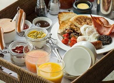 At Peartree Hill breakfast of home and locally produced ingredients can be served to you on the dining mezzanine or relax in your dressing gowns and enjoy it delivered to your bedroom whilst you soak in the view.