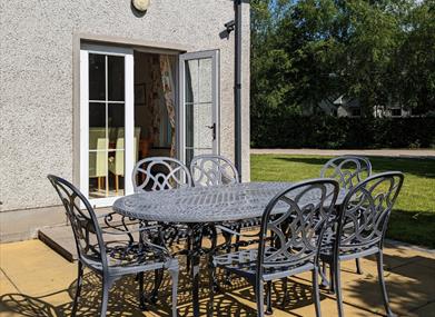The living areas have comfortable lounge furniture for 8 people, wood burning stove, and smart TV. French doors open unto a patio area where outdoor chairs, picnic table and charcoal barbeque are provided. A wood fired hot tub can be added to any booking, and is set up at the edge of the patio for your private use.