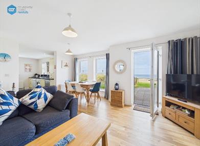 Spacious, 3 bedroom, beach front apartment overlooking the harbour and the bustling resort of Portrush. Great views, bigger than many apartments and no stairs to contend with.