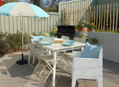 Outside there is a lovely south west facing patio and garden complete with patio furniture and barbecue. There is a raised grassy area which is surrounded by fencing and accessed by steps. Onsite secure storage for items such as golf clubs, bikes, paddleboards etc is offered on request and at no extra charge.