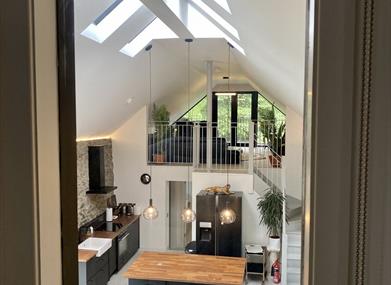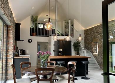 Charmingly furnished throughout, this property balances spaciousness with a cozy intimacy that makes returning from an adventure a pleasure. The heart of the Barn and perhaps its crowning glory, is its spectacular open plan area, with its 6 meter high ceiling it boasts a sitting area with a fireplace, a fully furnished kitchen, a dining area and a lounge leading out to the balcony with garden views.