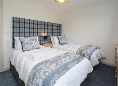 We have 2 bedrooms, one with a superking bed and one with 2 single beds.