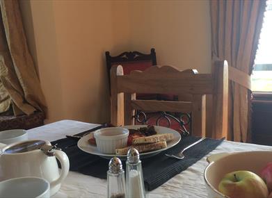 Breakfast is served in our large ground floor dining room with extensive sea views and the neighbouring historic church.