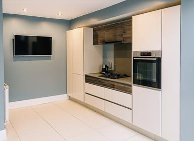 Kitchen & dining: A fully equipped kitchen includes all the essentials—oven, hob, fridge, microwave, dishwasher, washing machine, and tumble dryer—so you can enjoy home-cooked meals during your stay. The dining area makes a great spot for both casual breakfasts and evening meals.