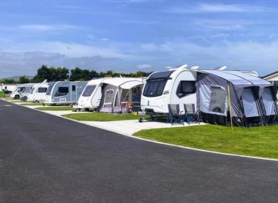 Touring caravans and motorhomes are welcome for short stays or even all season if you wish. All pitches have 16amp Electric hook-ups and Mains Water. Amenities include shop, launderette, children's play area and games room.