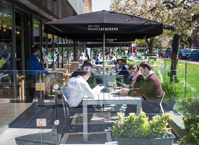 A stunning contemporary addition to the traditional architecture of Belfast's university area, this stylish restaurant overlooks Methodist College. Local, simple, hearty food is prepared to perfection by Great British Menu Chef Chris Fearon and complemented by the large range of fine wines and beers on offer in the extensive bar, including Deanes own 1993 Beer, marking 20 years of Deanes Restaurants. Deanes at Queen's is a 120 seater bar and grill, bringing a continental-style eating experience to the area, serving local, seasonal and simple food, prepared to perfection and complemented by the large range of fine wines and beers on offer in the extensive bar. With its glorious terrace, take advantage of the enviable leafy location overlooking the superb architecture of Methodist College, Botanic Gardens and the Ulster Museum.