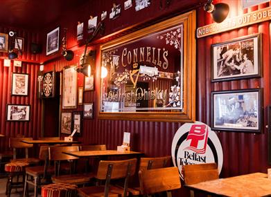 Situated on Union Street, neighbouring the Irish News offices and the old Belfast Telegraph building, the intimate bar’s warm and welcoming interior is clad with artefacts and memorabilia, illustrating the city’s colourful history through the eyes of the press. Local products make the headlines at The Reporter. Craft beers from Northern Ireland breweries, such as Beer Hut, Bullhouse and Lacada, are proudly poured alongside local spirits like Belfast Vodka, Hinch Whiskey and Ninth Wave Gin. The Reporter is a dog-friendly bar, open 7 days a week, from 2pm until 1am.