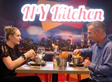 Food and Drink - NY Kitchen American style restaurant is fully licensed and offers delicious food and beverages before, during or after your activities. The restaurant is open to the public and serves succulent 100% steak burgers, stone baked pizzas, wraps and salads, not to mention the kids favourites from chicken tenders and ice-cream milkshakes.
