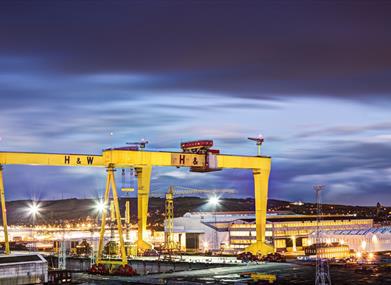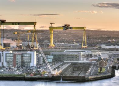 The two great yellow-painted gantry cranes Samson and Goliath have become icons of Belfast, dominating the entire city skyline.