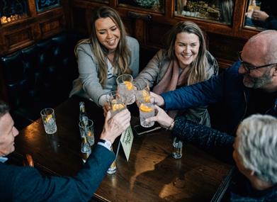 Belfast Gin Jaunt - Explore the best gins in Belfast on the ultimate Belfast Gin Tour. Enjoy trying 7 very different gins – including 5 locally crafted – as our resident gin connoisseurs provide expert insights into the different gin styles, garnishes, cocktails and more. Your 3.5-hour adventure begins at the renowned Victorian Gin Palace, The Crown, before we wind our way through Belfast’s best gin bars, bringing the tour to a close in the Cathedral Quarter. Our Belfast Gin Tour is suitable for all dietary requirements, making it an inclusive experience for gin enthusiasts of all tastes. However, please note, that if you don’t like gin or are alcohol-free, one of our other tours may be a better option. Discover the best gin in Belfast on the Belfast Gin Jaunt and savour the city’s diverse gin culture.