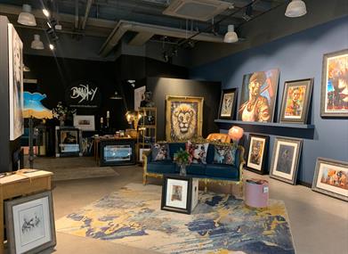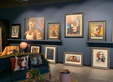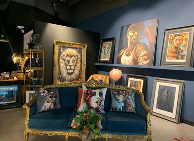 The galleries are spacious, inviting with interesting corners and relaxing seating areas. On show are a wide selection of Bradley limited edition prints, canvases, original art and hand embellished pieces. Also on display are a range of cushions, bespoke furniture, handbags etc. showcasing some of Terrys most famous artwork. Terry firmly believes in making art accessible for all, visitors can expect a warm and friendly welcome at both the Belfast and Bangor Bradley galleries.